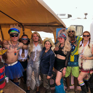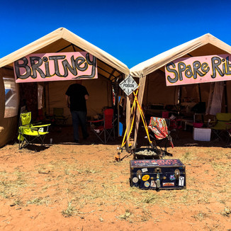 This Saguaro Man was an awesome burn without any fire. Arizona fire restrictions limited us to propane fires only. The wind and dust was a constant and did not let down more than an hour or two a day. Wearing googles and dust masks the whole time as if we were at Black Rock City. That did not stop us burners from having an amazing time in the middle of the desert by any means. I got in on Wednesday afternoon with my cousin. This was his first burn, so once we got to the gate we made sure he did a proper dirt angel and welcomed him home. We got to camp and set up for the rest of the afternoon. Thursday was our first full day at Sag. We began the endless walks around the loop with our campmates and drank and ate and were full of joy. Our camp was called "Britney Spearribs," and we threw a theme party on Friday. Over 10 of us dressed like Britney Spears in numerous stages of her life, while blasting Britney Spears music, gifting over 100 lbs of ribs and pouring people toxic. The line began small and after a short time it became a fun dance party while everyone enjoyed their ribs. Saturday was a very low key day for me, I wanted to chill out and spend sometime either by myself doing some thinking while there was no outside influences. I also took Saturday to sit with some people I had met through out the week and just sit one on one and pick their brains and get to know them more than what is on the surface. Had a wonderful time talking to Lucky, the owner and driver of "Shack to Helluride," which is an art cart that drives around at Saguaro Man and Burning Man. Sunday as usual, is a sad day to have to pack up and head back to the default world. I normally would take lots of photos but I have had a broken camera for quite sometime. Either way as always there is always just too many stories or memories to write about. The only way to know what a burn is about is to attend and participate. )`(