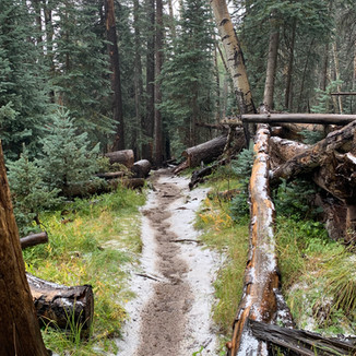 We drove up on a Friday and found a great camping spot off of FS222 in Flagstaff. We had a wonderful night camping. It was a quick night because we spent some time off-roading and playing around in the woods before we got to our site. Anyhow after a couple beers, a bon fire and a random guy walking through the woods we got to sleep. Woke up super early around 5am and packed, ate some oatmeal and were on the road to the trailhead for Humphreys Peak. Humphreys Peak is the tallest peak in Arizona, its said to be the only 14'er in the state of Arizona. We parked near Snowbowl and began our trek on the trail. Going through beautiful woods with overlooking canyons and draws. After a couple thousand feet we got above the alpine line where it became treeless and bare with nothing but rock. Once we got to this point the hike got interesting. The wind got stronger and the clouds dropped on us. Ive been told by several people this hike can go from good to dangerous in minutes and once the weather started to turn I would agree with them. Being only a 1/2 mile from the top we decided to push forward. By the time we got to the top we had zero visibility in any direction, freezing winds and light snow. We ate a quick snack and started our descend. The storm kept coming while we were at the top, hail and freezing rain drenched us. Once we got back into the tree line there was just rain and the occasional sleet. About two miles from the trailhead the lightning and thunder rolled in. This is where the hike got scary. We started a light jog back to the truck with lightning strikes that seemed just 100 feet away. The rain and snow did not let up until we got back to the truck, which was covered in a light snow dusting. Overall it was a great hike and I would love to do it again when the weather and visibility was better. This time though it made for a wild experience with an adventure buddy. To anyone that plans on hiking Humphreys Peak, just remember to check the weather especially during monsoon season as the weather on the mountain can change in minutes.